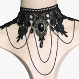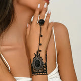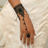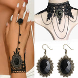 This 4-piece black gothic jewelry set includes an adjustable lace bracelet and matching ring, joined by a chain and accented with dramatic teardrop pendants—crafted from lightweight alloy for long-lasting wear with a dark romantic flair.