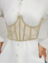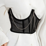 Sexy Corset Underbust Looking to add a bold, fashion-forward touch to your outfit? This underbust corset belt is your go-to statement piece. Designed with eye-catching metal chains, structured shaping, and luxurious lace green accents, it instantly sculpts your waist and turns heads wherever you go. Whether you're channeling street style or gothic elegance, this corset brings strength, sensuality, and sophistication to every look.