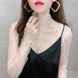 Fashion Women Long Sleeve Mesh Tops Sexy Mesh See Through Tank Tops Slim Ladies Turtleneck T-Shirt Summer Shirt Tunic For Girls