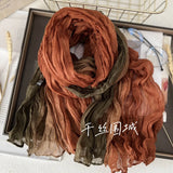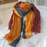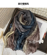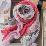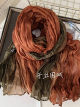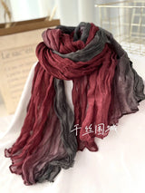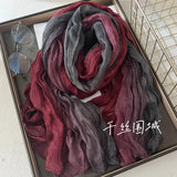 This soft, gradient-printed women’s scarf features a breathable cotton-hemp blend, an elegant retro-inspired ombre design, and a versatile long-shawl silhouette for effortless autumn and winter styling.