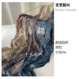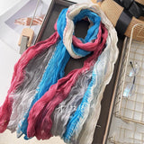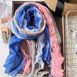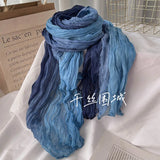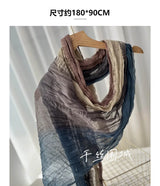 New Scarf Cotton Hemp Gradient Blue Autumn/Winter Retro Versatile Printed Women's Long Fold Shawl Elegant and Fashionable