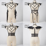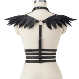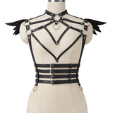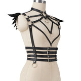 This Gothic-inspired harness features adjustable angel wings-shaped suspenders and a waist belt, crafted from durable faux leather and alloy hardware. Its body-inclusive design offers a customisation fit for various body types, making it perfect for street wear, concerts, festivals, club wear, and bold everyday looks.