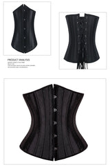 Featuring strong steel boning and soft satin fabric, this corset molds to your body while providing firm, supportive shaping. The steel bones gently lift your bust and define your waist without sacrificing comfort, so you can wear it for special occasions or long evenings without feeling restricted. Adjustable lacing allows you to control the fit and compression level, creating your ideal silhouette.